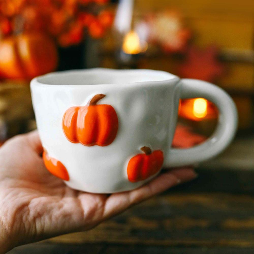 كوب سيراميك لموسم الخريف بتصميم يقطين
