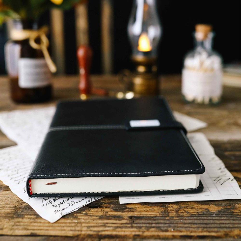 - دفتر جلد أسود مقاس A5